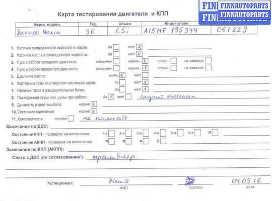 | Daewoo Nexia (KLETN) | 2009 | Двигатель б.у 2010г.пробег не более. 100 тыс. |