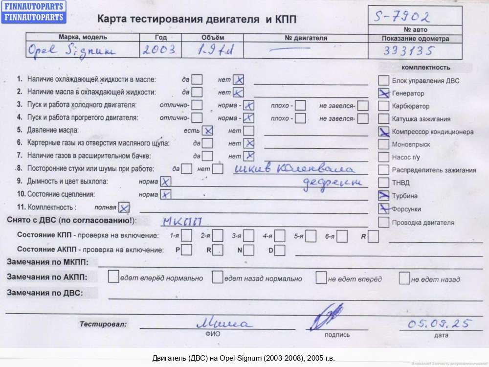| Казань | 2007 | 5601571, 55207535, 2007, 1.9л, Дизель, CDTI, Z19DT, Z19DT5302707, 5601571, 55207535, Хэтчбэк 5 дв., черный, Фото не актуально, с запчасти отделены: Генератор, Маховик, Турбина, Компрессор кондиционера, Z19DT5302707 | - | К, прокручивается, состояние ГРМ - нормально, поддон - нормально, клапанная крышка - нормально, эмульсия - нет, | |||
